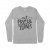 Eat Pray Give Thanks Jersey Long Sleeve T-Shirt is proudly made with 7x less water than average manufacturers, in recycle-friendly facilities that also guarantee zero sweatshop conditions. is designed and printed in California.